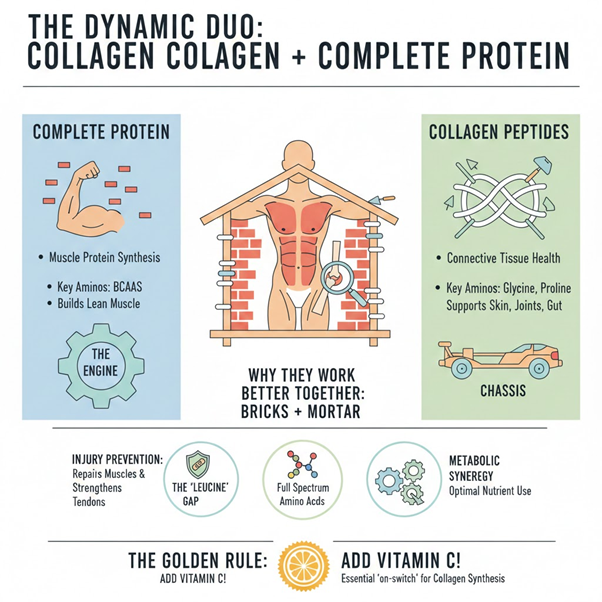 Collagen alone doesn’t replace protein. Athletes still need amino acids for muscle repair.